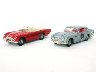 comprend : un cabriolet DB5 (état 'B', manque les 2 phares) & un coupé DB6 (état 'E', manque une partie de pare-chocs & décalques ajoutés)