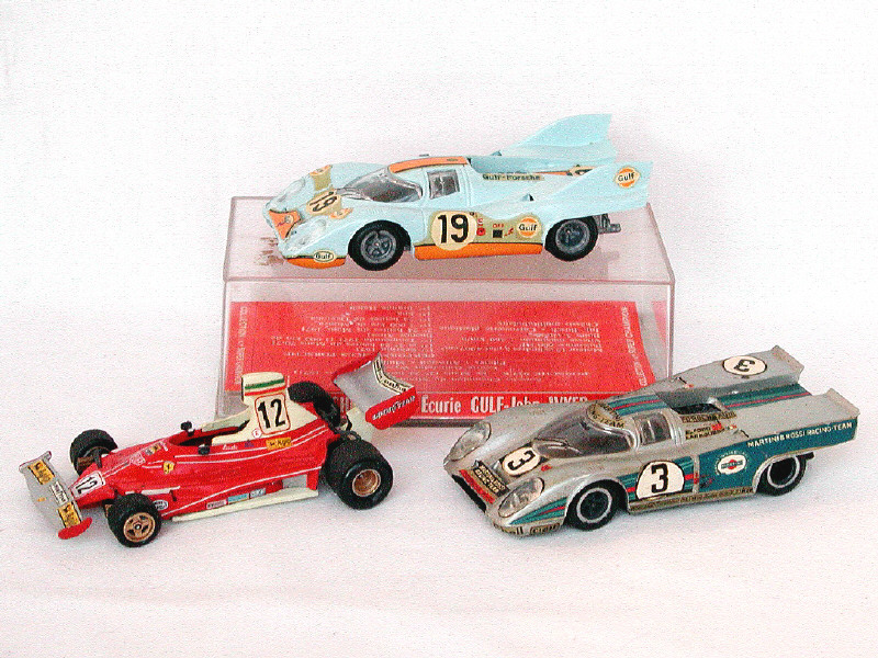 comprend : PORSCHE 917 (2 exemplaires dont un avec châssis repeint) & FERRARI 312T - un modèle avec boîte