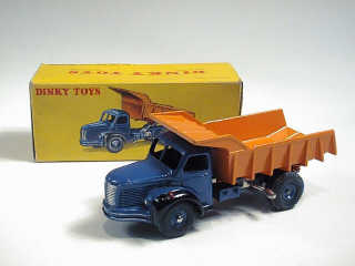 DINKY TOYS (FRANCE) 34A BERLIET Benne carrière MARREL (version avec jantes convexes) bleu foncé & orange