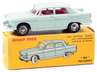 DINKY TOYS (FRANCE) 553 PEUGEOT 404 (premier moule) vert d'eau, intérieur rouge