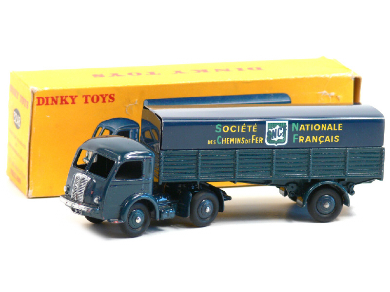 DINKY TOYS (FRANCE) 32AB PANHARD Semi-remorque 'S.N.C.F' (version avec intérieur de toit quadrillé) bleu foncé (fond de l'écusson quadrillé)