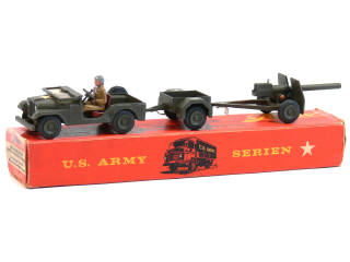 TEKNO (DANEMARK) 814KP JEEP WILLYS avec remorque-caisson à munitions & canon tractés kaki