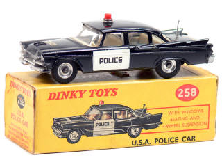 DINKY TOYS (GB) 258 DODGE ROYAL Sedan 'USA POLICE CAR' noir & blanc
