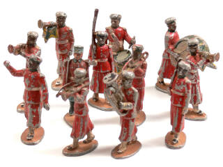 états de 'D' à 'E' - comprend : 2 soldats avec le fusil à l'épaule, un clairon, un tambour, 2 trombonistes, un soldat avec une grosse caisse, un tambour major, un tuba, 2 trompettes & un officier - quelques petits manques