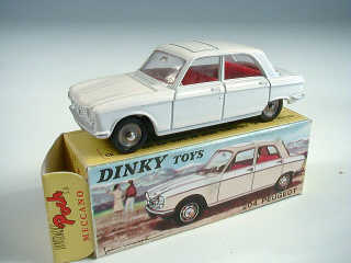 DINKY TOYS (FRANCE) Série POCH 510 PEUGEOT 204 blanc, intérieur rouge & volant blanc
