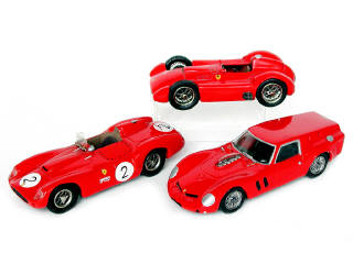 miniatures reproduisant les modèles : 412 de 1958 (série limitée numérotée 147 sur le châssis), 250GT Breadvan Le Mans 1962 & une barquette carénée (pneus craquelés) - on y retrouve les marques : BALESTRINI, GRAND PRIX MODELS & divers