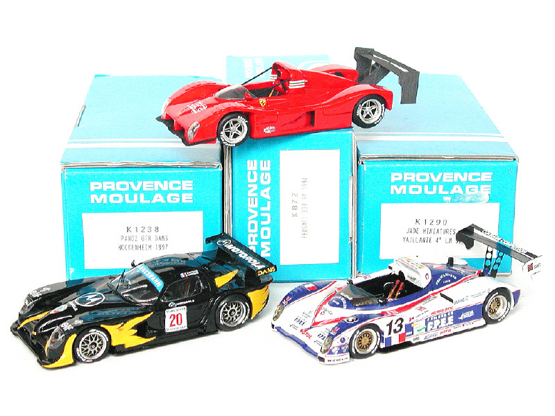 miniatures reproduisant les modèles : PANOZ GTR Hockenheim de 1997, FERRARI 333SP de 1994 & VAILLANTE Le Mans de 1997 (réalisée par JADE MINIATURES, avec notice)