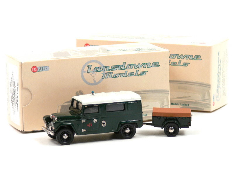 LANSDOWNE MODELS (GB) 40X AUSTIN GIPSY 'AUXILIARY FIRE SERVICE' avec remorque téléphone 1965 vert foncé, toit blanc & bâche marron