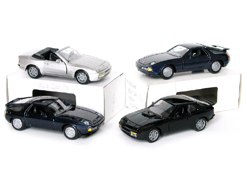 miniatures reproduisant les modèles : 944 S2 coupé, 928 S coupé, 928 S4 coupé & 944 cabriolet - 3 dessus de boîte fendus