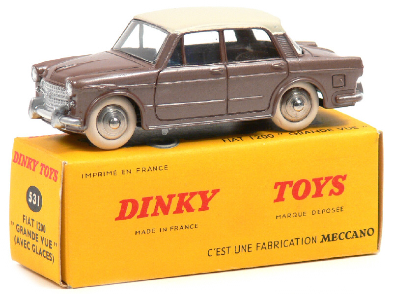 DINKY TOYS (FRANCE) 531 FIAT 1200 GRANDE VUE (version avec jantes convexes) havane métal, toit crème