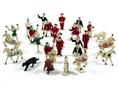 Ensemble de 58 figurines, 2 chevaux & 3 diligences -